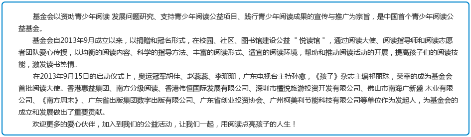 粤ICP备15108679号-1 Copyright © 2013 - 2020 版权所有:广东省南方阅读公益基金会